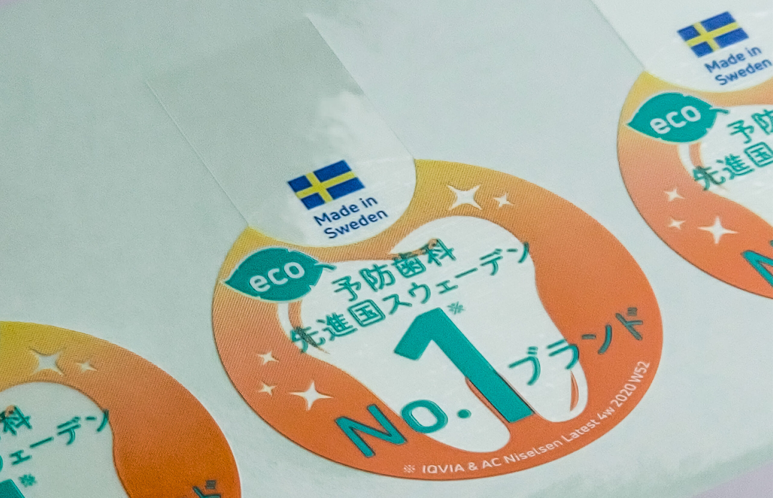特色印刷で色鮮やかな色を再現!清潔感のある歯ブラシのアテンションシール