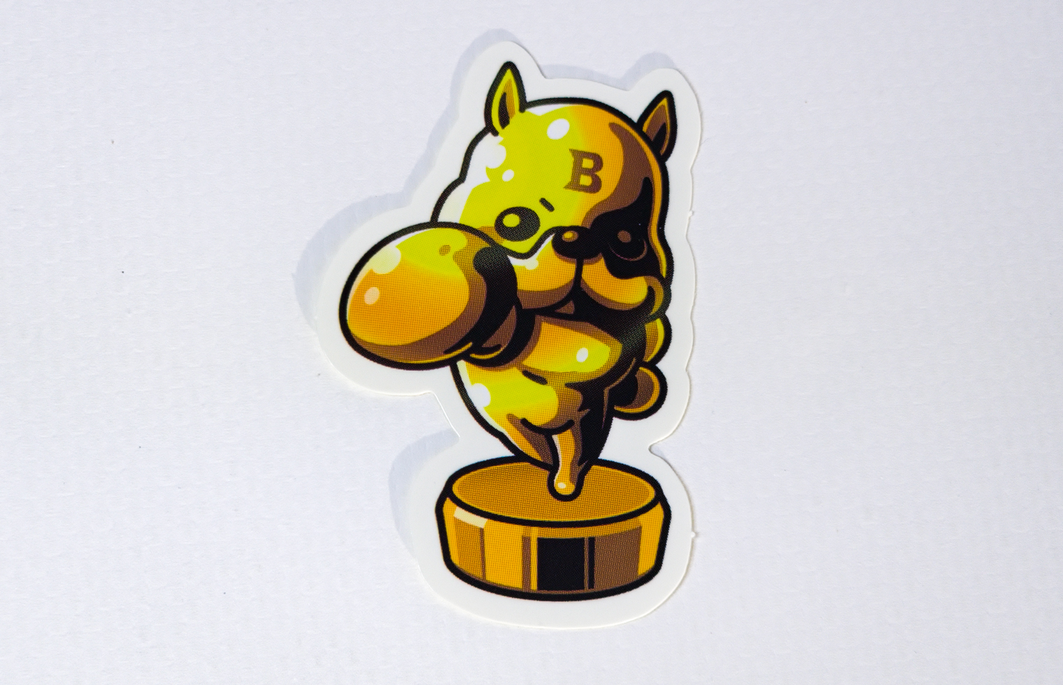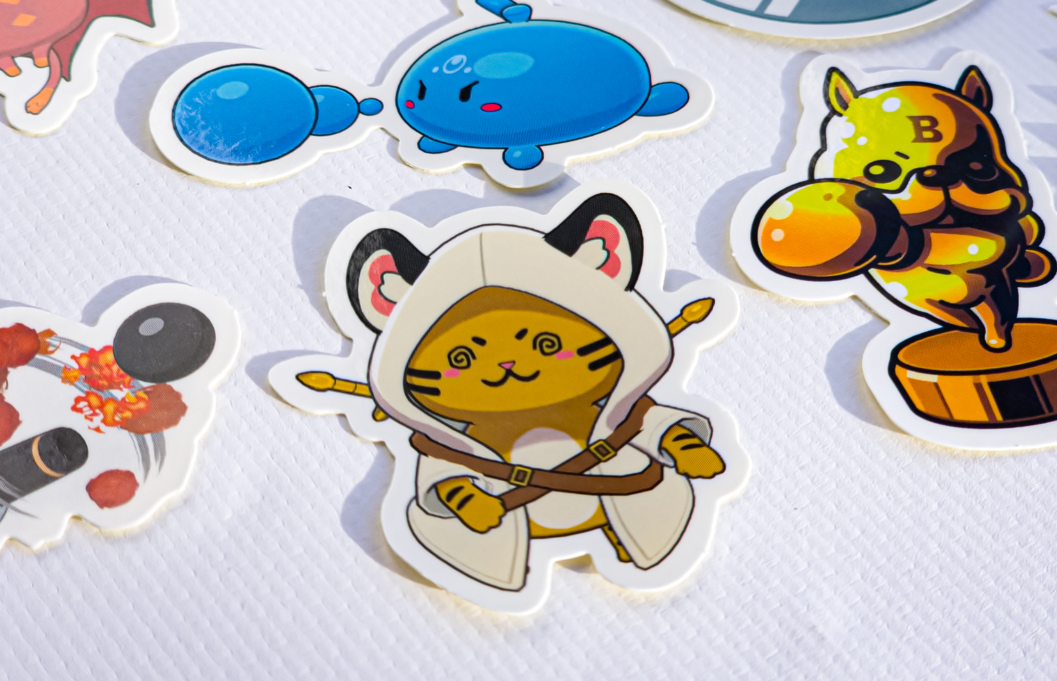 今回のフレークシールでは、紙素材であるアートタック紙を採用しました。アートタック紙は発色の良いラベル・シールを制作できるのが特徴で、キャラクターの鮮やかな色合いをしっかりと再現できます。