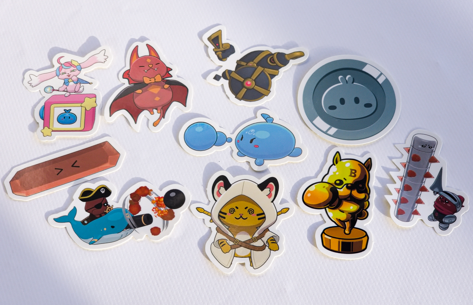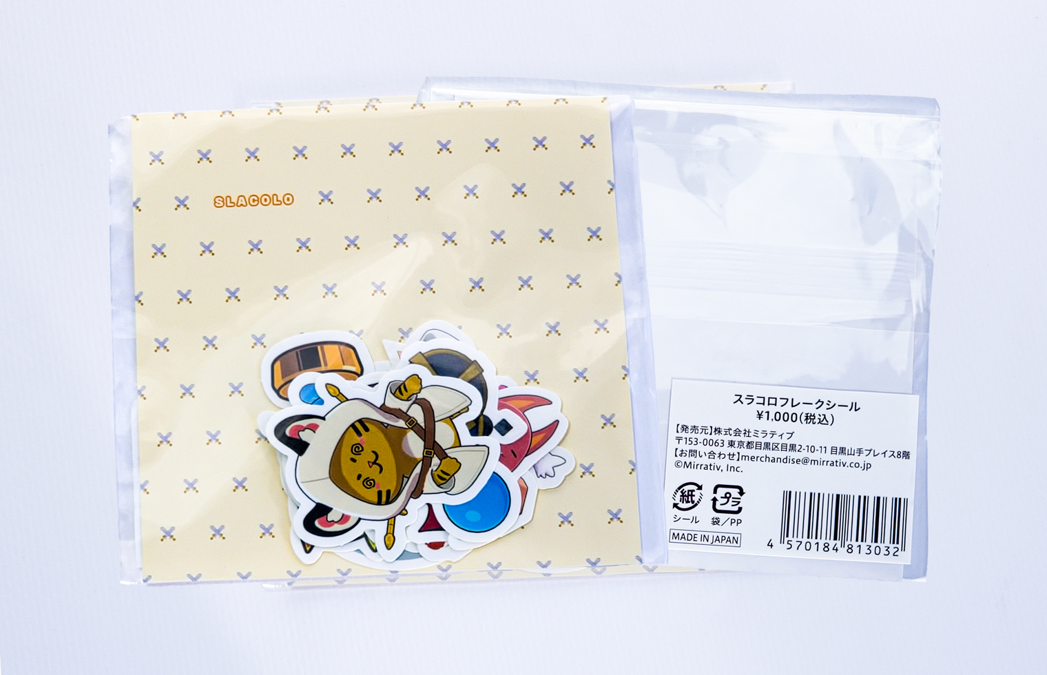 ポップストアでは、スマホゲーム「スラポンコロシアム(通称:スラコロ)」の10種類のキャラクターをモチーフとしたグッズが販売されています。かわいらしいキャラクターをデザインしたフレークシールを制作しました。