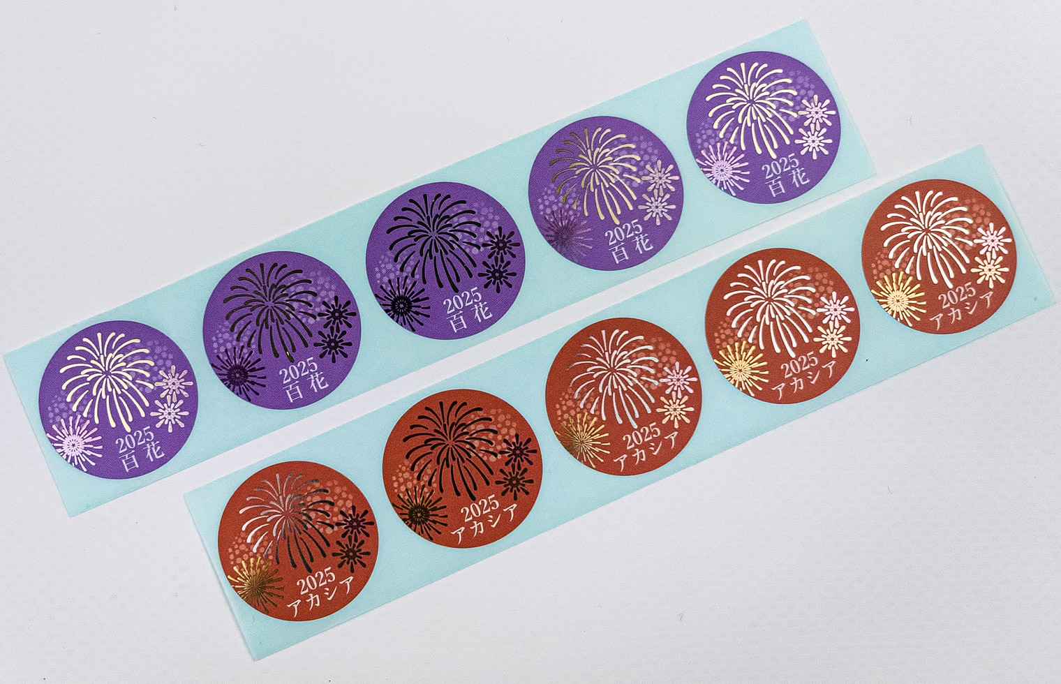 夜空の部分には下地に白を印刷し、シルバー原紙のキラキラ感を抑える工夫をしています。花火の部分のシルバーの光沢感と、静かな夜空の色合いに差をつけることで華やかな花火のコントラストをはっきりと出すことができました。
