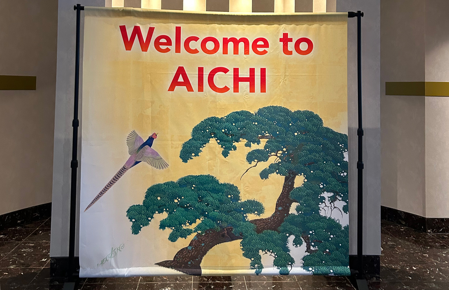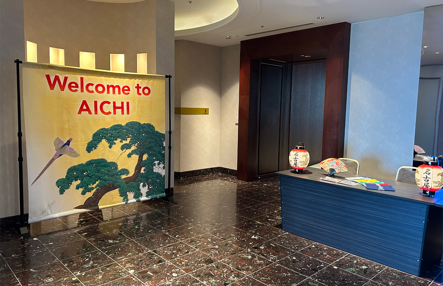 今回、第20回アジア競技大会(2026/愛知・名古屋)における「世界放送者会議」及び「世界報道会議」の参加者を対象としたエクスカーションの交流会開催に向けイージーウォールバナーをお選びいただきました。イージーウォールバナーの基材には、ターポリンやトロマット、スエードなどございますが、今回は「トロマット」を選定致しました。トロマットはポリエステル100%の厚手の平織り布でできております。見た目には光沢のないマットな質感となっており、軽量で折りたたみやすく持ち運びに適している基材になります。耐久性にも優れておりサイズが幅1800mm~2400mm/高さ1100mm~2400mmまでで自由なサイズ指定ができるので、横断幕やタペストリーなどの屋内・屋外の装飾物によく使われており、発色が良いのでデザインが目立ちやすいのが特徴です。